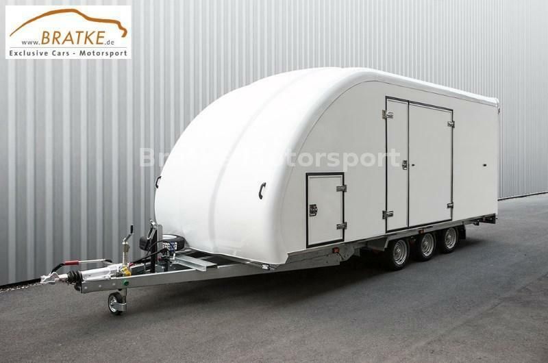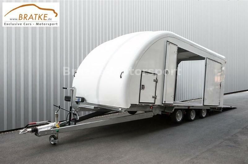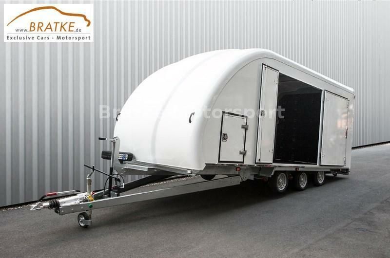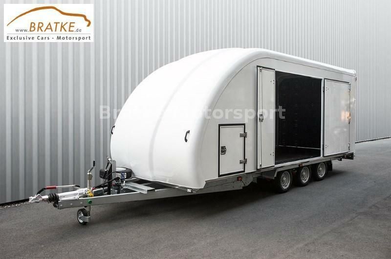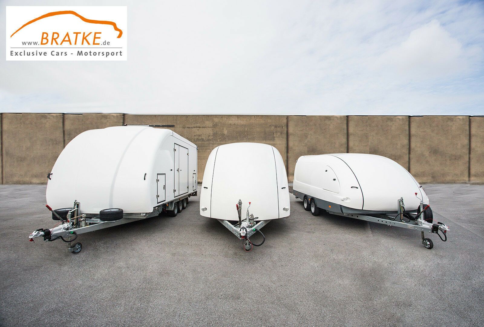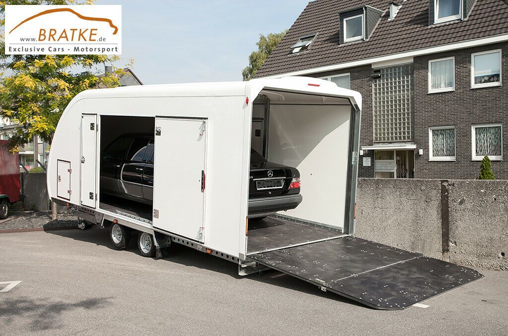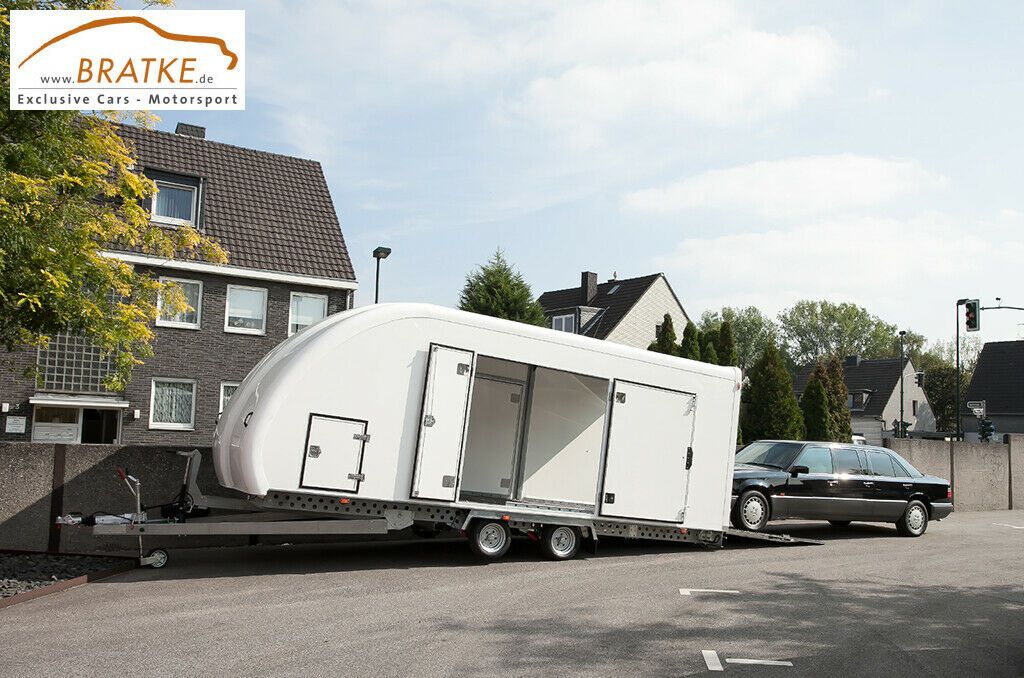 Der Bratke RL 6000 ist wahlweise als 2 -Achser oder 3 -Achser erhältlich!!Ideal zum Transport von hochwertigen Fahrzeugen, extrem flach zu befahren, seitliche Türen zum bequemen Ein- und Aussteigen, Ersatzrad, LED Aussen- und Innenbeleuchtung, Stromversorgung durch eigene Batterie, Hänger mit hydraulischer Kippvorrichtung, integriertes Deichselschloß, rundum abschließbar, 100km/h Zulassung dank hydraulischer Stoßdämpfer, 2-Achser 12 Zoll Felgen, 3-Achser 10 Zoll Felgen, 5.70m Innenlänge, 2.16m Innenbreite, 2,02m Innenhöhe. Derzeit zwei Varianten lieferbar "Standard" und "Plus" (Innenbreite +17cm). Standard Variante als 3 -Achser wie oben beschrieben VK Preis ab Euro 23.900,- brutto / frei Düsseldorf. Leasing oder Finanzierung auf Anfrage möglich.